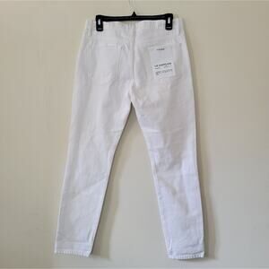 FRAME Denim Le Garcon High Rise Straight Jeans in RUMPLED BLANC RIPS