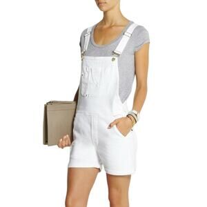 FRAME Denim White Le Garcon Stretch Denim Overalls Shorts Size XS