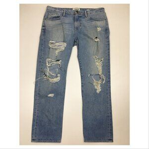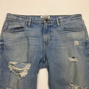 FRAME Denim Le Grand Garcon Richmond Wash Distressed 5Pocket Logo Hardware Jeans