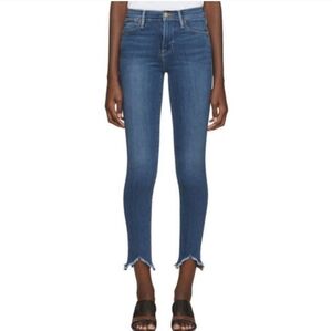 FRAME Denim Le High Skinny Jeans. In Sulham dark wash. Triangle raw hem. High waisted.