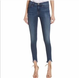 FRAME Denim Le High Skinny Jeans. In Sulham dark wash. Triangle raw hem. High waisted.