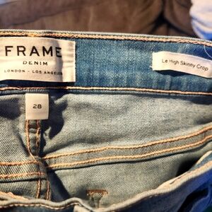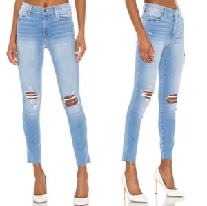 FRAME Denim Le High Skinny Crop Jeans. Raw hem. In light wash Daze. Distressed look. High waisted.