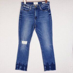 FRAME Denim Le High Straight Jeans Raw Edge Fade Merriweather size 27 Stretch