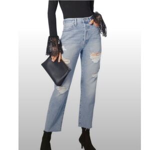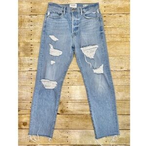 FRAME Denim Le Original Harrah Distressed Straight Leg High Waist Cropped Jean
