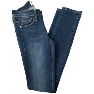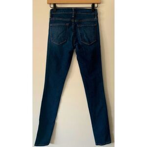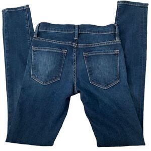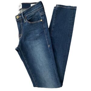 FRAME Denim Le Skinny De Jeanne jeans in size 24. These mid-rise skinny jeans are in excellent pre-owned condition and feature a deep indigo wash and super stretch denim.