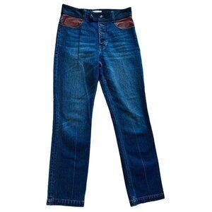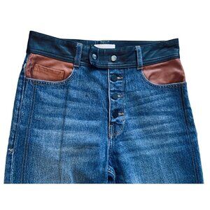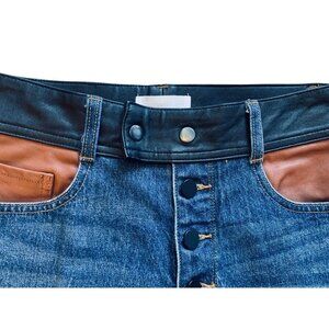 FRAME Denim Leather Block Sylvie Flynn Jeans Button Fly Dark Wash High Rise 27