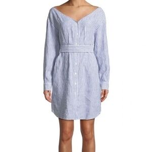FRAME Denim Linen Blue & White Striped Long Sleeve Shirt Dress w/Tie Waist Sz M