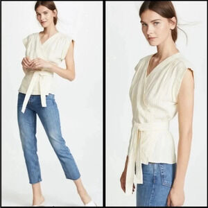 FRAME Denim Linen Wrap Striped Yellow and White Top Size Medium