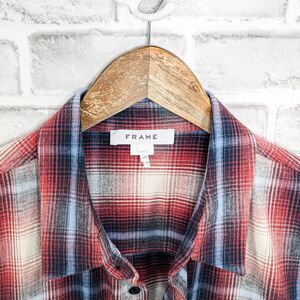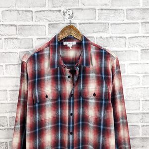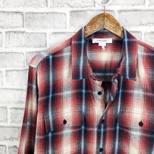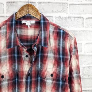 FRAME Denim Men's Plaid Double Pocket Flannel Shirt in Red blue plaid size Large