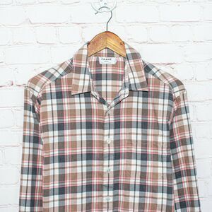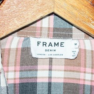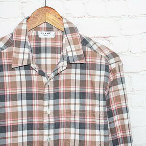 FRAME Denim Men's reg fit Fray Hem Button up Flannel Shirt Gray Multi Plaid Sz M