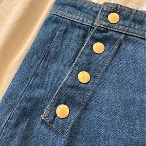 Brand new, never worn with original tags. Frame Denim mini skirt high-quality denim and gold snap buttons. Very hip, comfy and flattering.