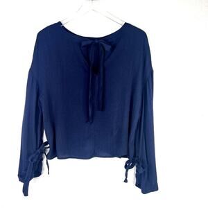 FRAME Denim Navy Long Sleeve Blouse Cinch Tie Cuff Tie Neck Viscose MEDIUM