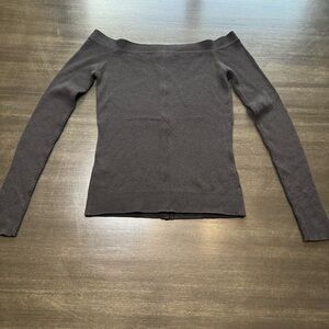 FRAME Denim Off Shoulder Ribbed Sweater Black Wool Blend Fitted Knit Size M