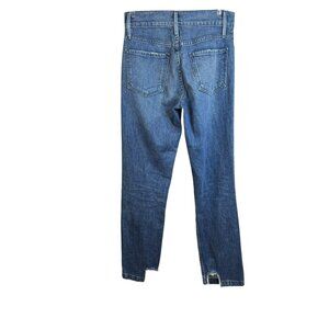FRAME Denim Skinny Jeans Size 26 Medium Wash Raw Hem Distressed Ankle Cropped
