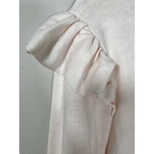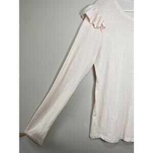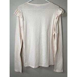 FRAME Denim Top Light Pink Ruffle Shoulder Crew Neck Long Sleeve Tee Casual