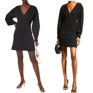 Frame Denim V neck Smocked Long Sleeve Mini Dress Size Small Black