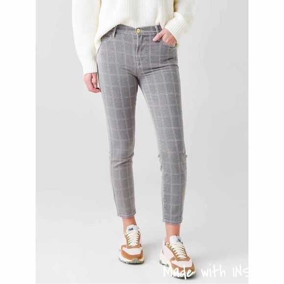 FRAME Denim women's 'Le High Skinny Crop' jeans in "windowpane plaid" print. Great condition.