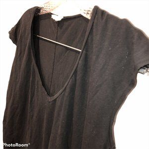 FRAME Denim black tissue cotton v-neck cap sleeve T-shirt top