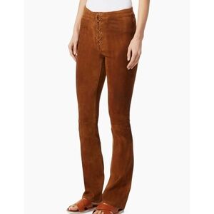 Elevate your everday look with these suede bootcut pants featuring a lace-up front.