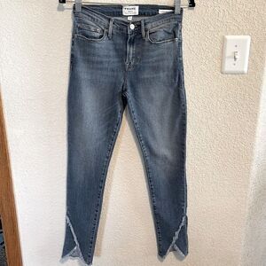 FRAME Denim-Le Skinny Jeans Cristallo Fringe Tulip Hem Jeans, Size 26
