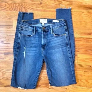 FRAME Distressed Le High Skinny Raw Hem Jeans(25)