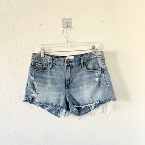 Stylish and comfortable denim blue shorts with a trendy distressed look. Perfect for casual outings.