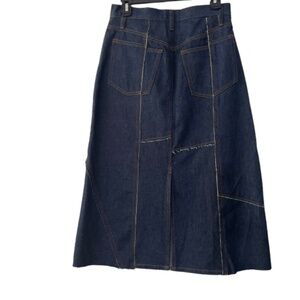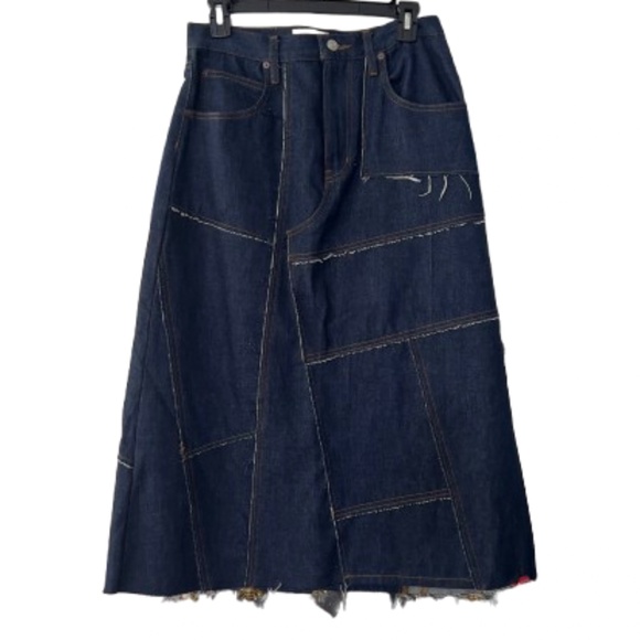 FRAME Frame Denim Jean Skirt Patchwork Dark Wash Midi NEW Women's Distressed 27W