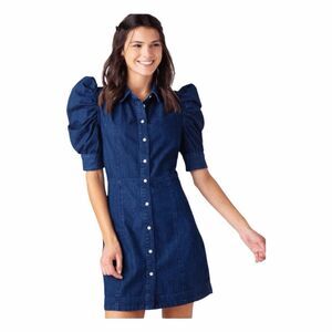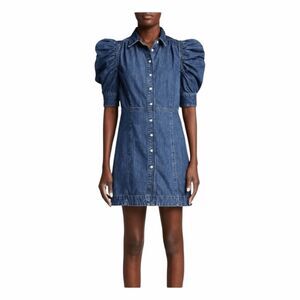 FRAME Gillian Puff Sleeve Denim Dress Mini Button Front XS