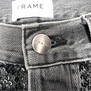 FRAME Gray Denim Sequin Basque Rip Distressed High Rise Button Fly Crop Jeans 27