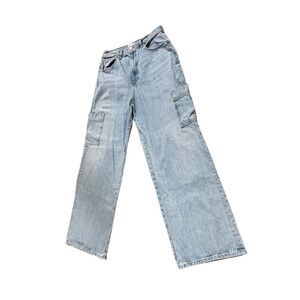 FRAME High Rise Baggy Pocket Cargo Jeans Wide Leg in Genoa Light Wash Size 32
