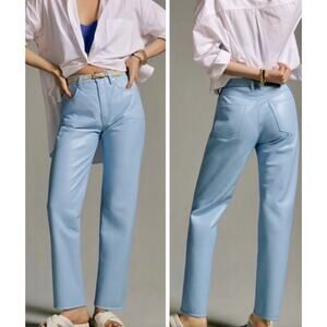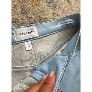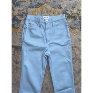 FRAME High'N'Tight Straight Leather Pants in Oxford Blue