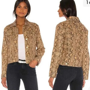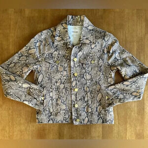 FRAME Jean Jacket Animal Print Coated Python Denim Jacket, Size XS
