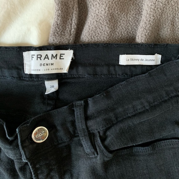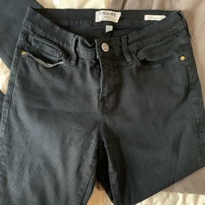 Black, mid rise, skinny size 28 FRAME jeans in great condition. Have a stretchy, super comfortable fit and feel.