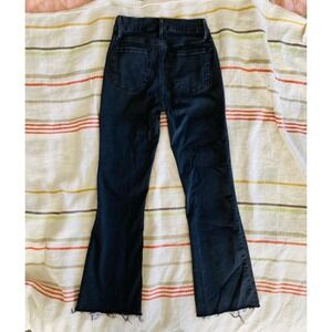 FRAME Kerry Le Crop Mini Boot black denim jeans. Boot cut crop fit with raw edge, lots of stretch.