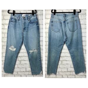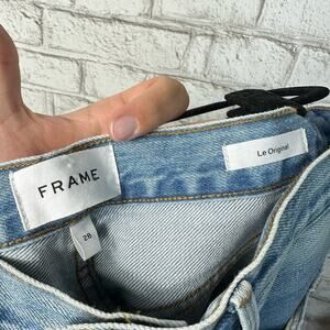 FRAME Jeans Le Original Straight High Waist Crop Distress Limelight Chew Blue 28
