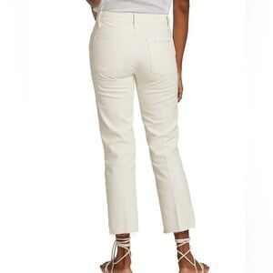 Brand new with tags FRAME Jeans Le High Straight Raw Stagger Crop in Au Natural Grind (a very light ivory- almost white). Size 33. Factory distressing. Step hems. Zipper fly with button closure. Functional pockets. Highrise. Retailed for $245. NWT.