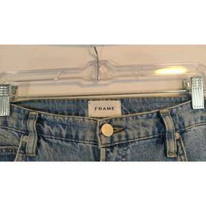 The FRAME Jeans Zona Straight High N' Tight in size 32 offer a fashionable and flattering fit for women. Made from high-quality denim with a light wash, these jeans feature a high rise and a straight leg style. The classic blue color and regular fit make them versatile for everyday wear. The inseam is 29 inches, providing a comfortable and on-trend length. Perfect for a casual yet stylish look, these FRAME jeans are a must-have addition to any fashion-forward wardrobe.
