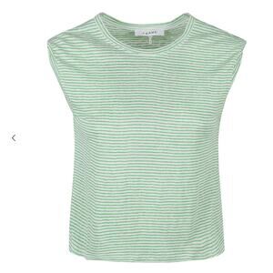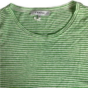 FRAME Knotted Rolled Muscle Tee Linen Top Shirt | Womens L, Green White Stripe