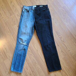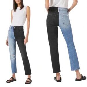 FRAME LE SYLVIE SLENDER STRAIGHT jeans TWO TONE high waist ankle stretch