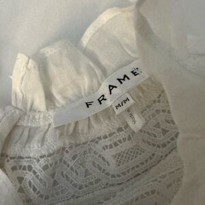 FRAME Lace Insert Short Sleeve Top in Blanc