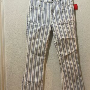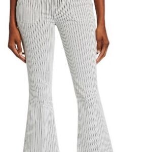 FRAME Le Bardot Crop Flare Leg Jeans Striped Mid Rise Raw Hem, Dutch Blue Multi
