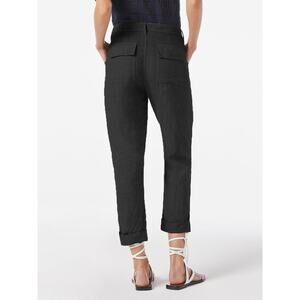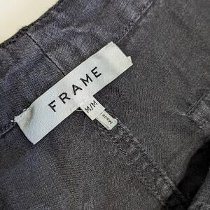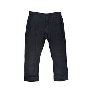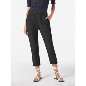 FRAME Le Beau Cropped Linen Pants Utility Black Washed Noir High Rise Medium