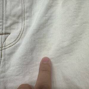 Pre owned. Some small stains throughout Jean shown in photos. Have not tried to treat. They are all pretty small and not very noticeable.