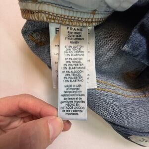 FRAME Le Crop Mini Boot Jeans Remsen Wash Blue Raw Hem Cropped Bootcut Size 25