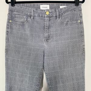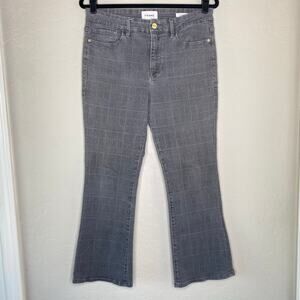 FRAME Le Crop Mini Boot Washed Gray Plaid Check Cropped Bootcut Jeans 30