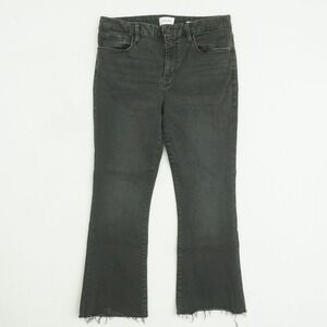 FRAME Le Crop Mini Boot Womens Jeans Dark Grey Charcoal Frayed Hem Size 32 Denim