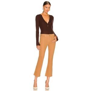 Elevate your wardrobe with these stylish FRAME Le Crop Mini Coated Boot Flare Pants in a beautiful camel latte brown. These pants are perfect for adding a touch of sophistication to any outfit.