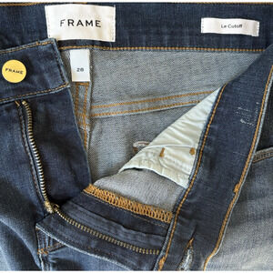 FRAME Le Cutoff Denim Shorts Dark Wash Jeans Raw Hem Mid Rise Nordstrom Size 28