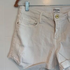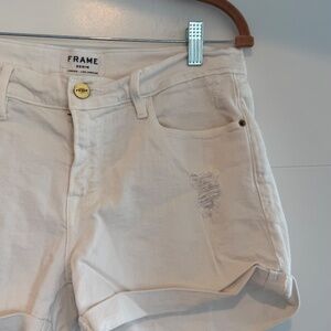 FRAME Le Cutoff White Denim Shorts, Size 28