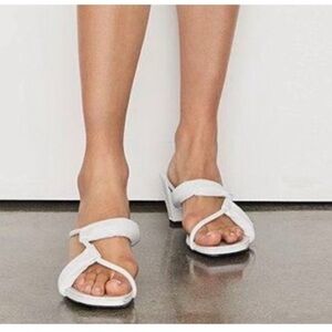 FRAME Le Gracie Asymmetric White Leather Slip on Slide Sandal Kitty Heel 7.5
